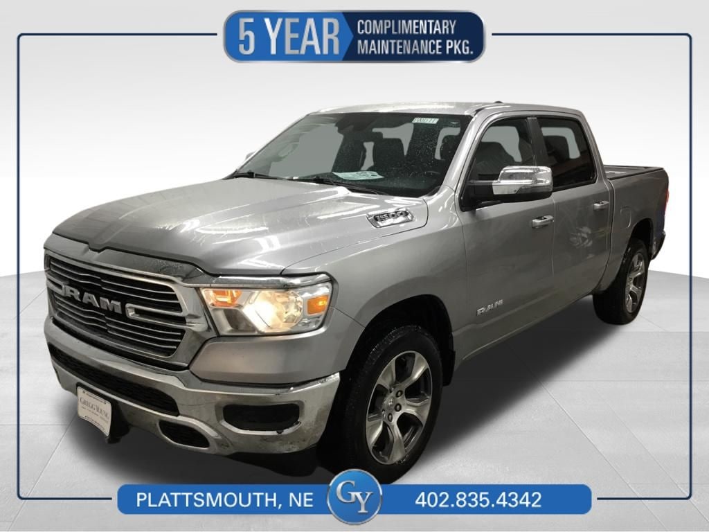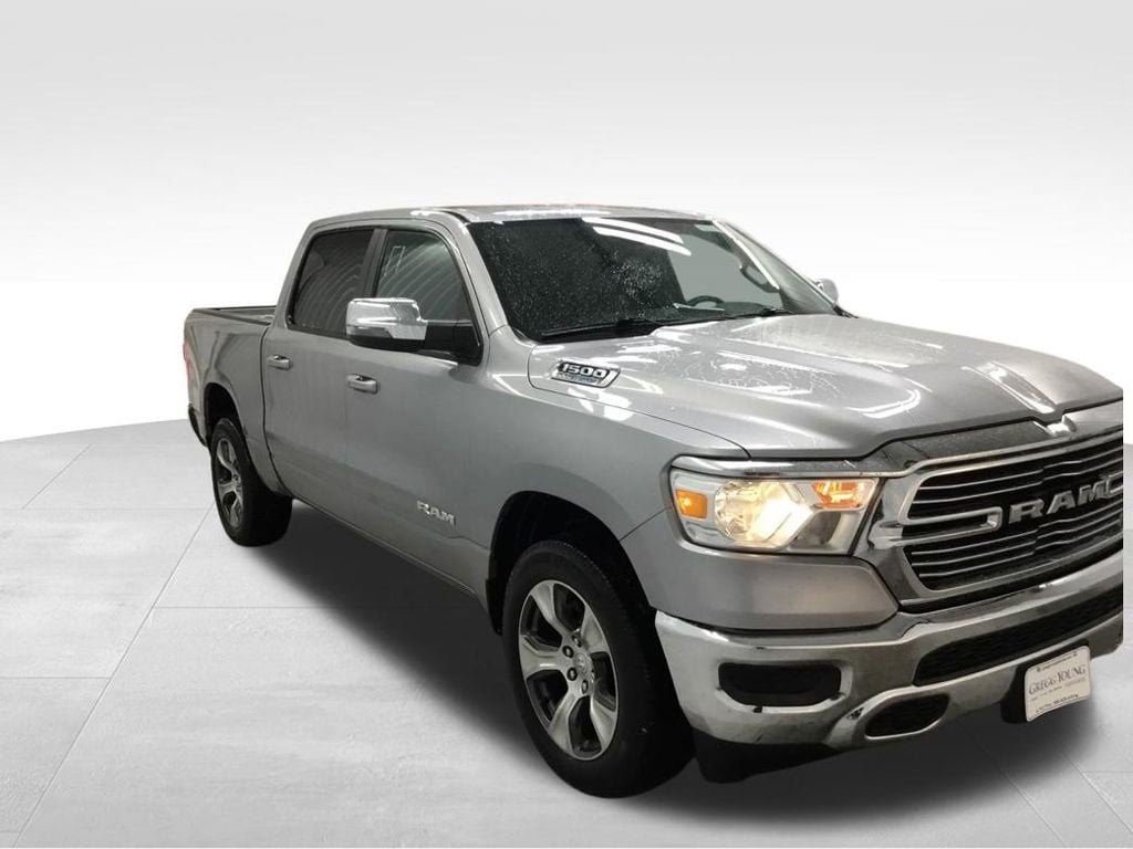 Our legendary One Owner 2023 RAM 1500 Laramie Crew Cab 4X4 is here to move forward with confidence in Billet Silver Metallic Clearcoat! Powered by a 5.7 Liter HEMI V8 providing 395hp to an 8 Speed TorqueFlite Automatic transmission ready to get to work. This Four Wheel Drive truck rewards you with responsive handling and returns nearly 23mpg on the highway. An impressive daily driver, this machine is ready for extraordinary challenges with LED taillamps, an LED hitch light, bright bumpers, 20-inch premium wheels, chrome accents, a Class III bumper hitch, and heated-power-folding mirrors.